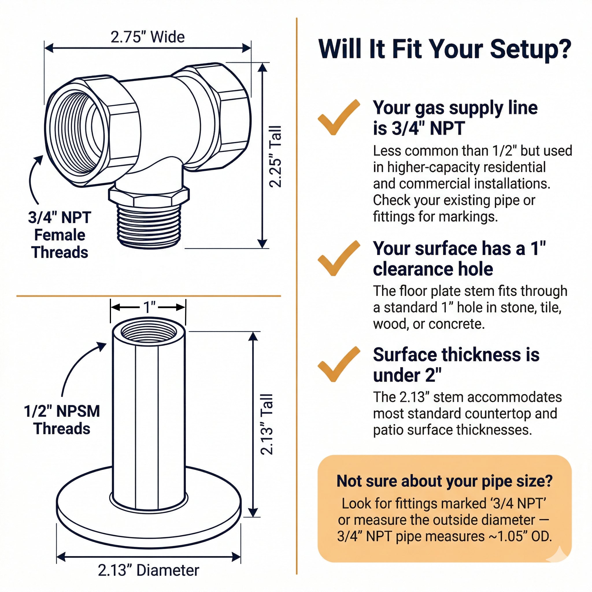 • Solid brass valve for superior longevity and performance. • Ball valve provides excellent on/off control without pressure drop. • 3/4" NPT inlet and outlet. • Easy 1/4-turn operation to turn on or off. • Chrome floor plate and key for added beauty to your fire feature. • ANSI Z21.5 CSA Certified • 300,000 BTU
